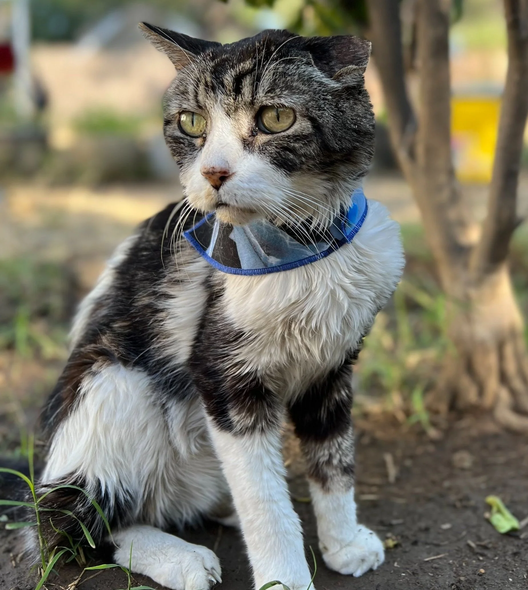 About a year later, we discovered Snow with multiple injuries. We attempted to trap him, but he eluded us for days. Eventually, we learned that he belonged to the mechanic down the street, who was heartbroken over Snow's condition. We offered to take Snow to the vet for treatment, explaining that he would need a safe, indoor space to recover. With tears in his eyes, he entrusted Snow to us, knowing he couldn't care for him as needed.
