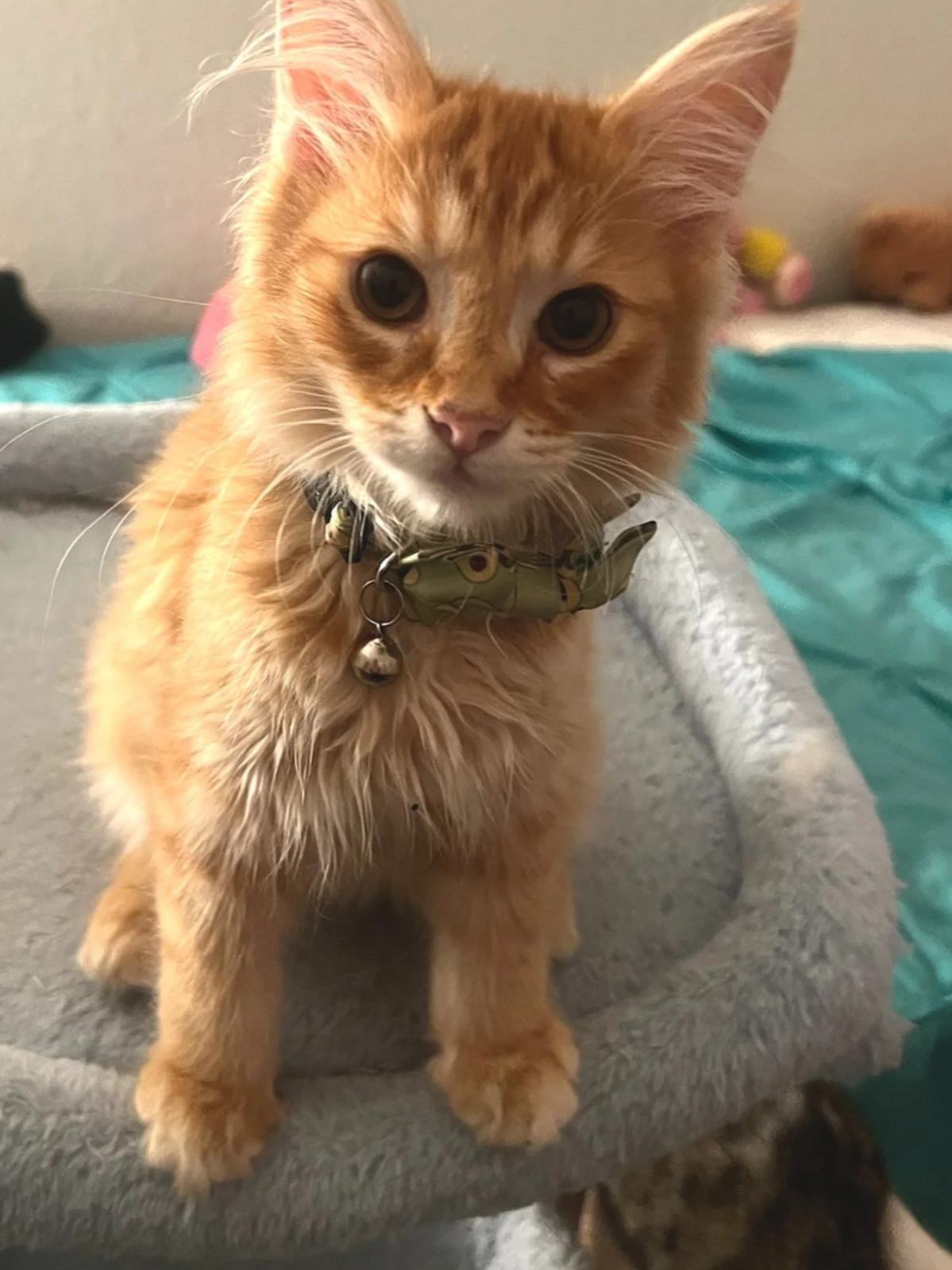 Cutest little fluff who is sweet, playful, and adventurous. Loves to run around, climb cat trees and plays with cats of all ages.